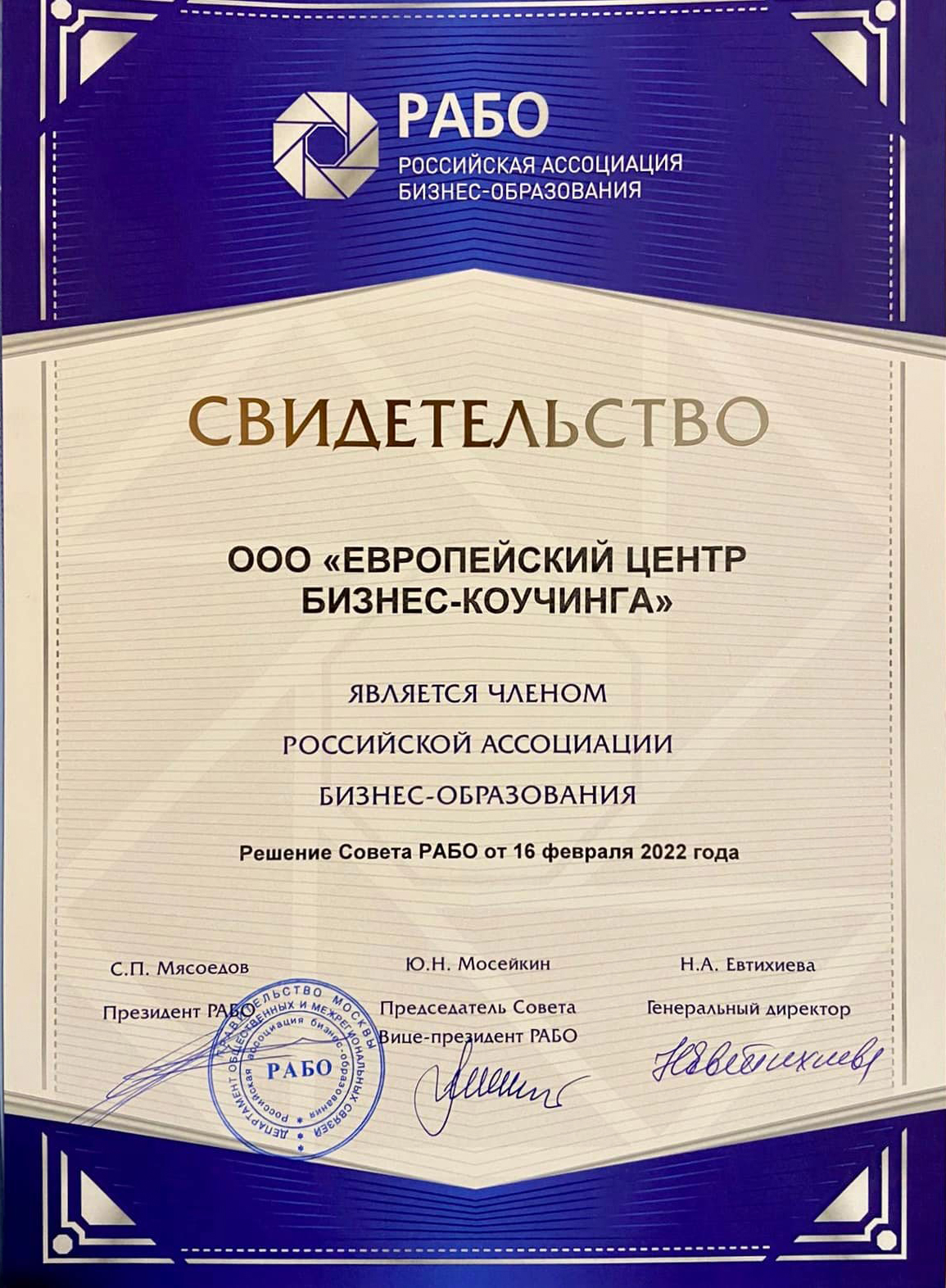 Кандидат экономических наук, доцент НИУ ВШЭ. Основатель и генеральный директор Европейского Центра Бизнес Коучинга, Председатель комиссии по коучингу в НАСДОБР